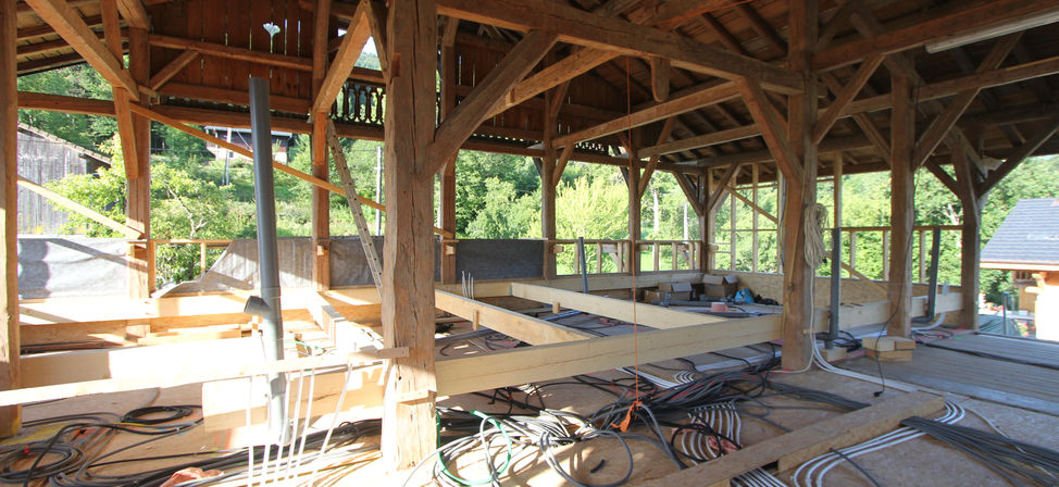 This uninhabited building, dating back to c1746, had enormous character and a great position on a plateau with fabulous views. My design split the 450m² building into an owners’ apartment of 90m² and a commercial holiday chalet of 360m². The design created luxurious accommodation with comfortable spaces, a connection to the alpine landscape, and a blend of modern fittings with rustic materials. I also wanted to reuse as much of the original building’s wood as possible. Technical challenges to resolve included structural beam calculations for a large new covered 20m² balcony supporting an eight-person hot tub, with a new roof above. The calculations for the roof had to consider the structural loading of snow in the winter. The traditional Savoyard style roofs retain the snow with snow bars rather than let it slide off so in an average winter this new section of roof would need to support up to 35 tonnes of snow. My design fused vernacular forms - stone walls, vertical timber cladding, generous roof overhangs - with more modern elements such as large expanses of glass. The character of this ancient Savoyard building was reinforced by removing the concrete render that covered the external stone facade and painstakingly repointing the exposed stonework with a lime mortar to allow the building to breathe.